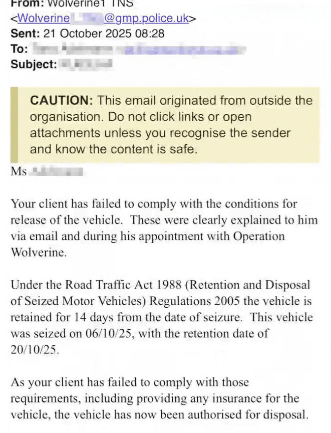 We have asked Greater Manchester Police if we can film the vehicle being rendered into a small cube of scrap metal…