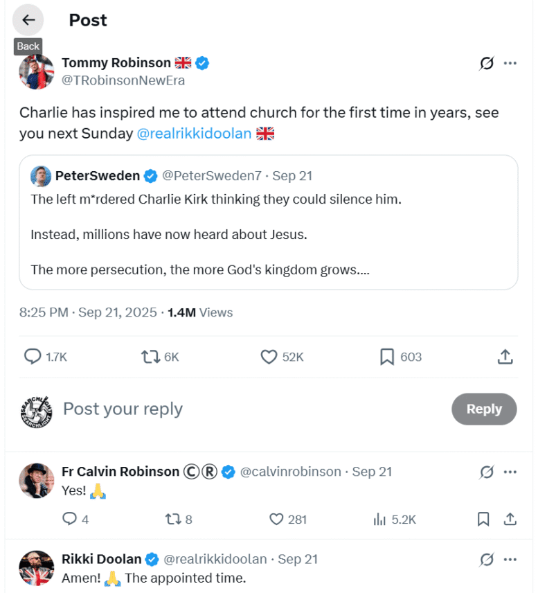 Ten days ago, ‘Tommy Robinson’ announced online that the following Sunday (ie three days ago) he would be going to church.