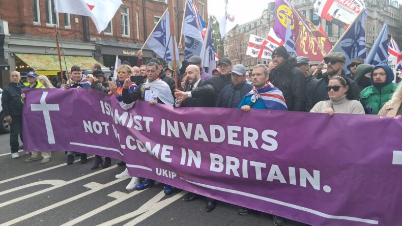 The composition of the UKIP crowd was telling. A ragtag mix of football firms, drunken louts violating their own “dry march” rules, and a who’s-who of online far-right grifters.
