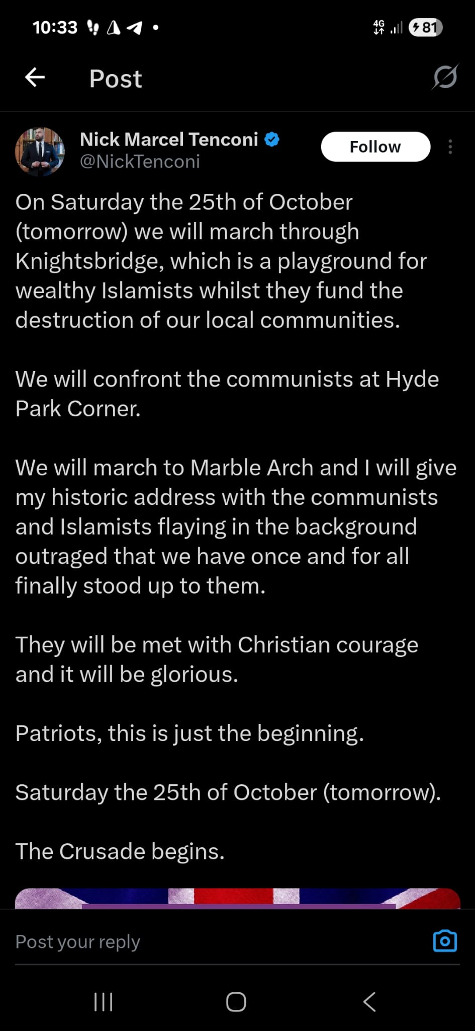 They came promising a show of strength. What unfolded instead was a pitiful spectacle. In Central London this afternoon, Nick ‘Taco’ Tenconi’s so-called “remigration” march proved not just a failure, but a farce – underwhelming even its own participants and costing the taxpayer dearly in policing.