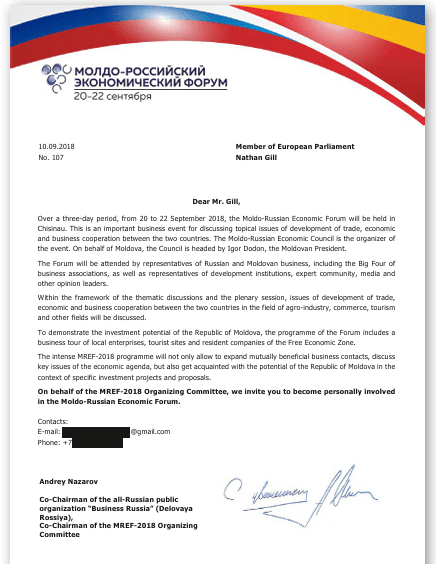 In September 2018, he surfaced again – this time in Chișinău, the Moldovan capital, at the Moldo-Russian Economic Forum. The gathering was organised by Andrey Nazarov, co-chair of “Business Russia” and an architect of the Yalta International Economic Forum held in annexed Crimea.