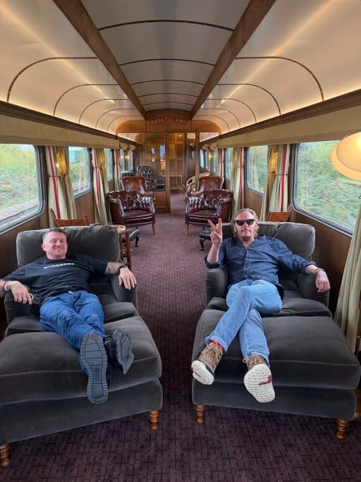 Then back in the UK Robinson – real name Stephen Yaxley-Lennon – popped up as a guest traveller aboard a luxury locomotive in the company of Laurence ‘Loosa’ Fox.