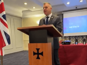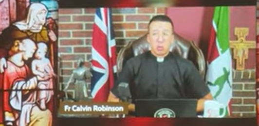 Another featured speaker at the conference was the batshit preacher himself, the ‘Reverend’ Calvin Robinson, beamed in by video link from the US.