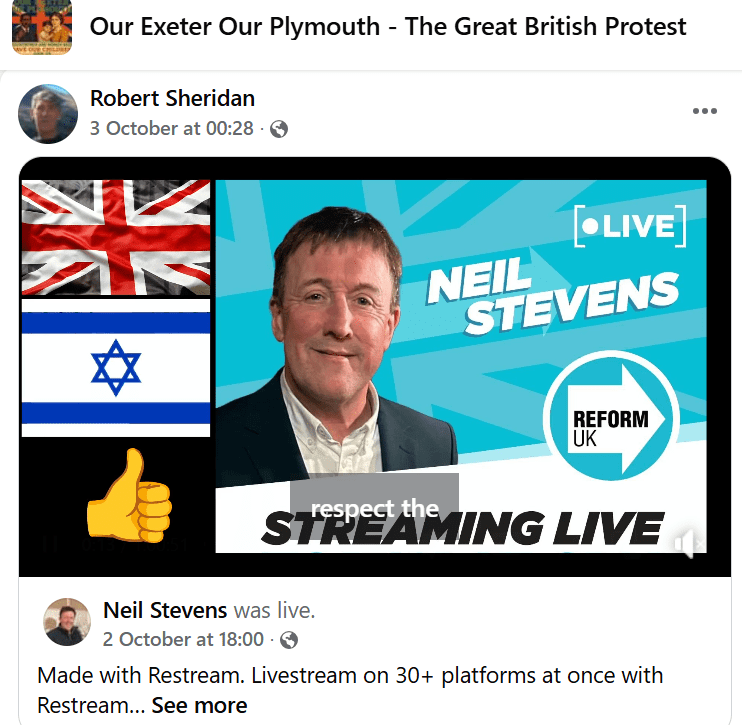 Crucially, he helps run the Facebook group “Our Exeter Our Plymouth,” which has become a hub for Britain First and Reform UK supporters.