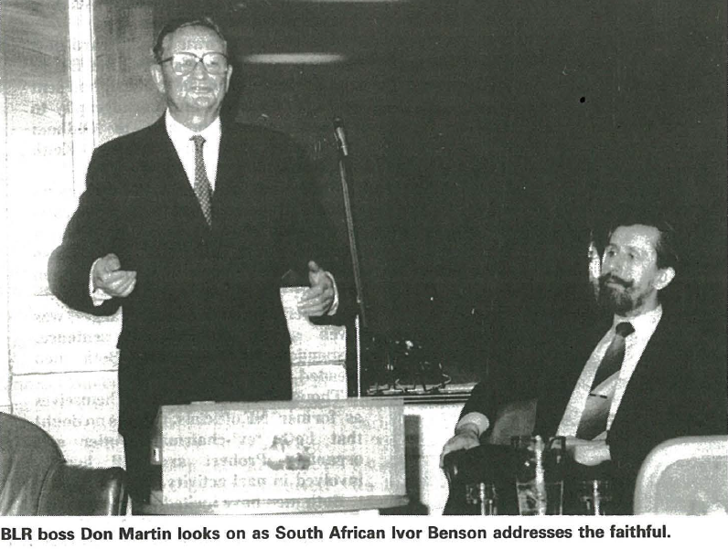 Benson, who went on to become information minister in Ian Smith’s racist administration, was a close friend of Martin, regularly visiting Britain to speak at League of Rights meetings. Martin acted as the UK distributor of Benson’s own magazine, Behind the News.