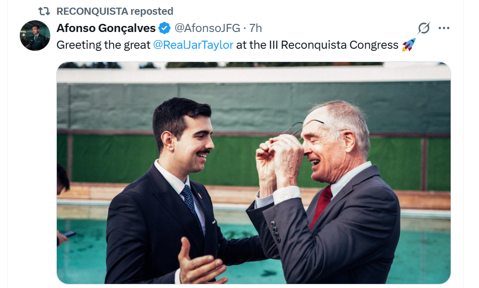 Then, only two weeks ago, Taylor was one of the stars of a “Remigration” conference in Oporto, Portugal.