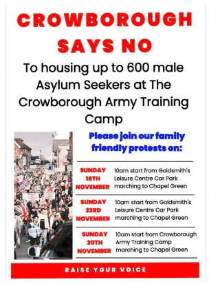 The announcement that 540 asylum seekers would be housed for twelve months at the disused Crowborough Army Training Camp in East Sussex has triggered a wave of protests.