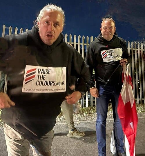 The videos, circulated on YouTube and other social platforms, featured Tommy Robinson’s close mate Danny Tommo, along with Ryan Bridge and Elliott Stanley from Raise the Colours, both of whom come from the Midlands.