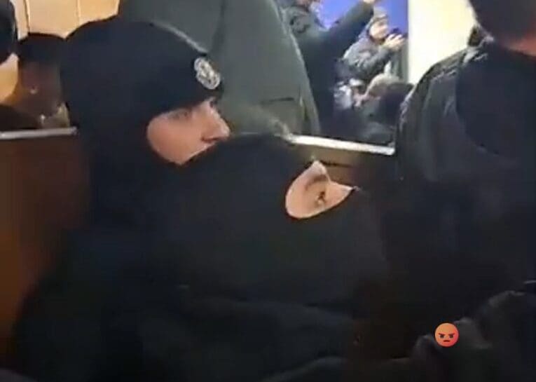 More than 50 protesters – including men wearing balaclavas – attended the meeting, during which councillors were abused and council property was damaged.
