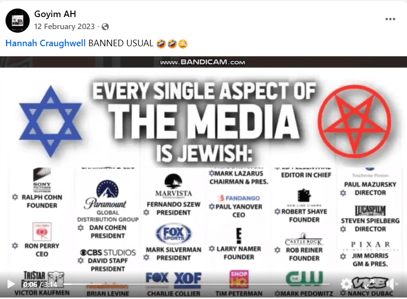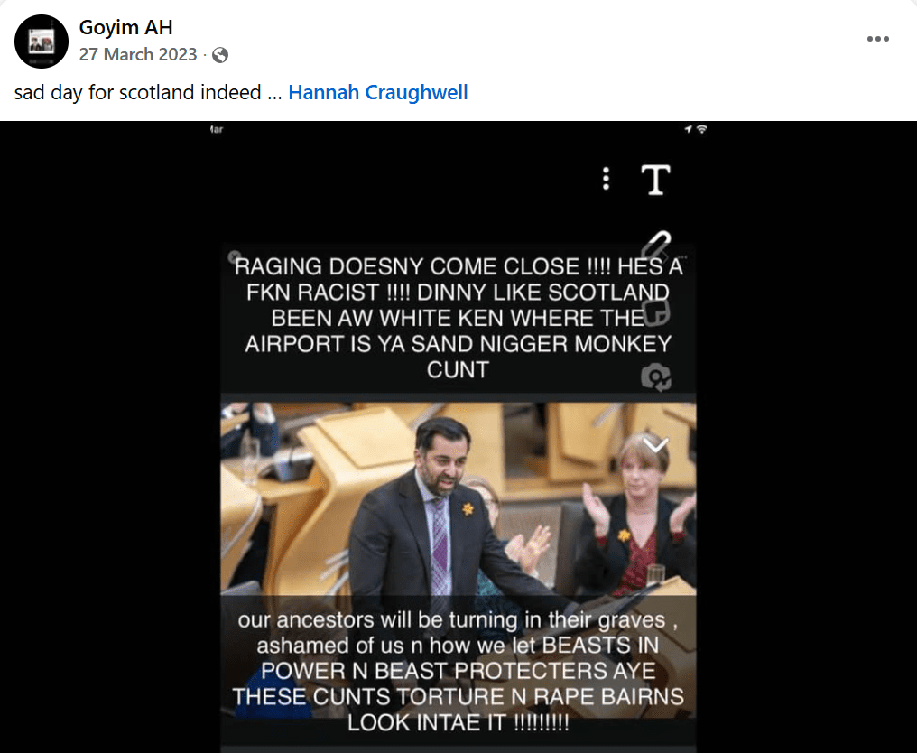 Hannah Craughwell used a Facebook account in the name of Goyim AH to distribute vile antisemitic and racist material. On the account, she was listed as the only friend and every post was tagged to her alone.