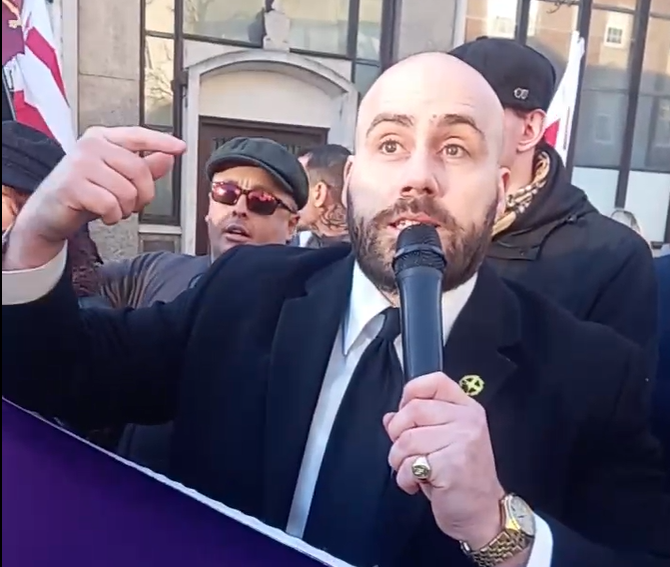 The event was live-streamed in its entirety by two self-styled “citizen journalists”, who despite being supportive, only managed to capture the total ignominy of the day’s proceedings where Tenconi desperately tried to conceal the pitiful turnout behind a big “mass deportations” banner.
