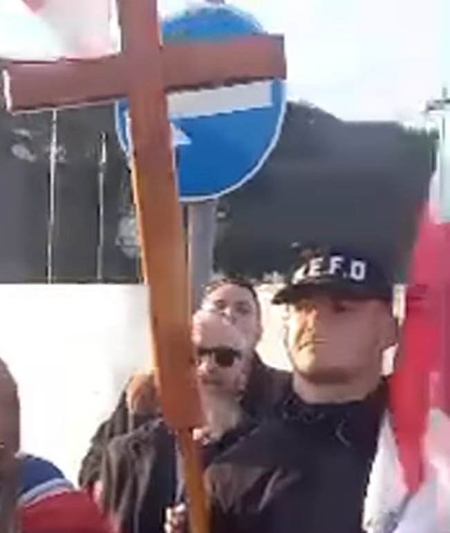 At last, the march stopped for the concluding rally. Tenconi thanked the crowd for its composure when confronted by anti-fascists. “I know what you want to do”, he said, but the police had been there.