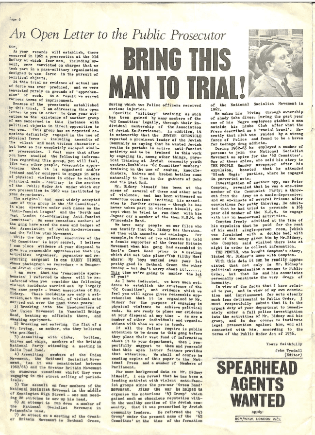 Material provided by Searchlight, especially photographs of NF leadership figures in nazi uniform which had been seized during the Notting Hill raid, played a decisive role.
