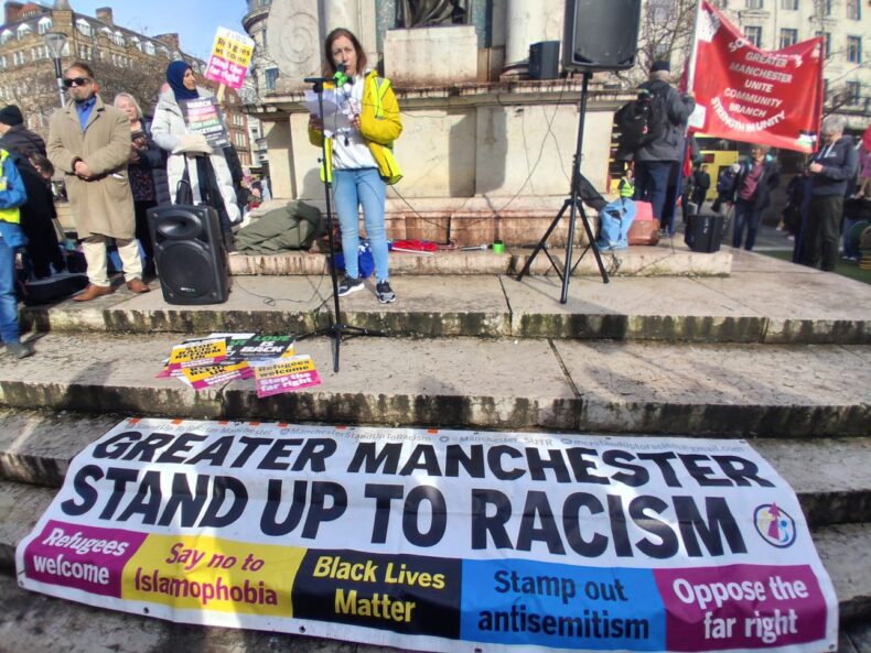 A huge rally, probably the biggest anti-fascist gathering held in Piccadilly Gardens, welcomed speakers including Jeremy Corbyn and Green Party organisers campaigning for Hannah Spencer in the Gorton and Denton by election.
