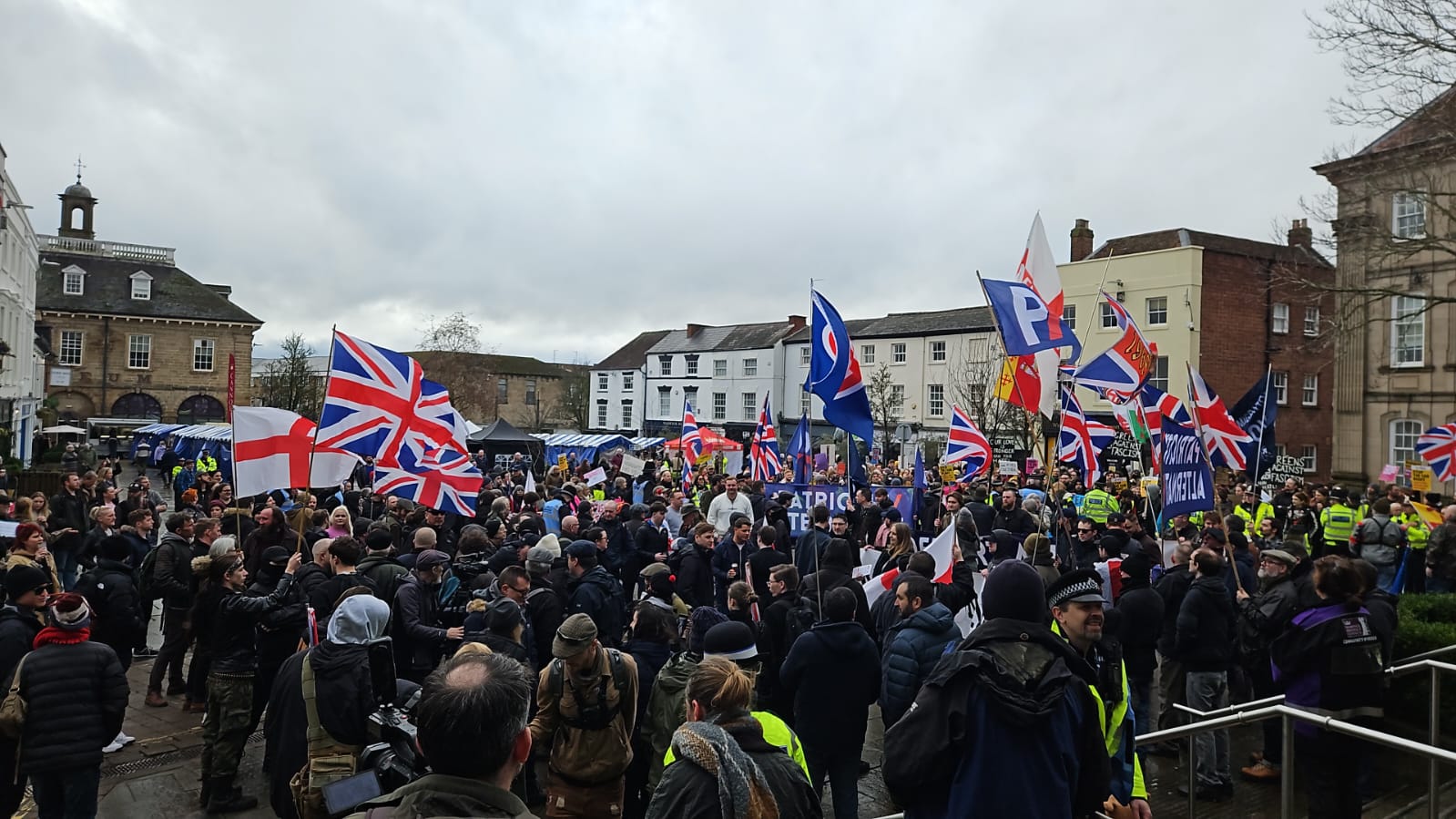 Held in the town centre, the gathering failed to meet Collett’s apparent expectations for a considerably larger mobilization. Even photographs and footage posted by PA itself depict a sparse crowd.
