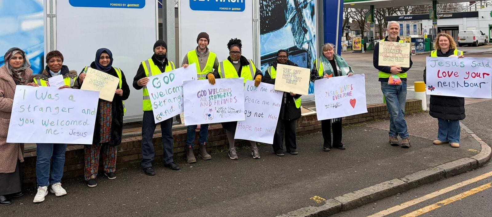 One telling response came from local churches and interfaith groups. A delegation carrying signs reading “Jesus Says Love Your Neighbour” handed out origami peace doves along the route, a quiet but pointed rebuttal to UKIP’s attempt to claim Christian moral authority.