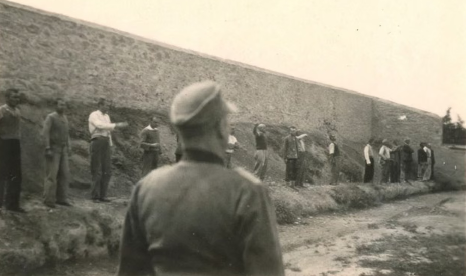 His grandson confirmed the identification after consulting a surviving witness, describing Kalafatakis as “a giant of a man… without a trace of fear as he walks toward the wall”.