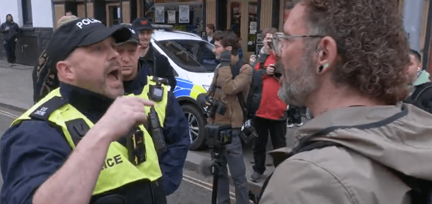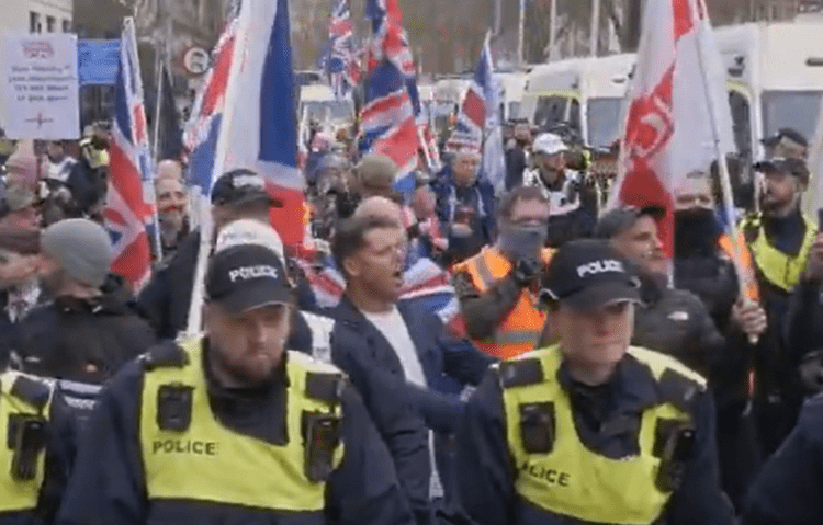 Both Moffatt and Messenger were up to their usual tricks during the march, filming while they tried to provoke their opponents. Messenger had to be warned by police to behave himself.