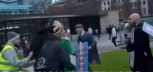 Carrying anti-trans sandwich boards, he and ex-military provocateur-in-chief Steve James, hurled abuse at Hannah Spencer before attempting to get in her face, harass her and stop her walking away from a Together Alliance rally in Piccadilly Gardens.