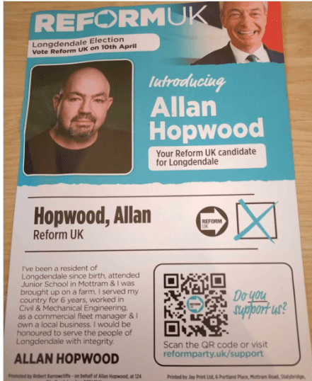 In Longdendale, Greater Manchester, the same pledge was made by the victorious Reform candidate: