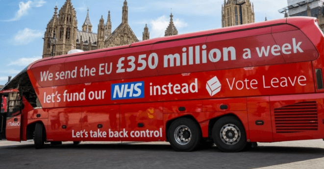 The slogan, “We send the EU £350 million a week. Let’s fund our NHS instead”, became one of the most visible and influential messages of the entire referendum campaign.
