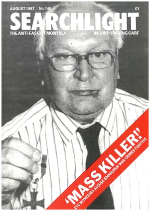 The August 1987 issue of the magazine carried the results under the front-page headline “Mass Killer!”, with Gecas’s photograph and eyewitness accounts placing him at massacre sites. You can read the full account of Searchlight’s war crimes campaign here.
