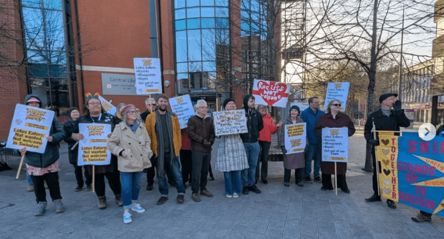 The Lotus Eaters brought their live show to Swindon’s MECA venue yesterday evening, and Swindon anti-rascists made sure they did not go unopposed.