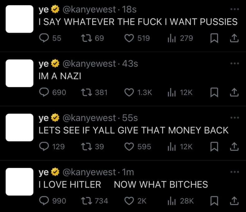When Nick Fuentes, Andrew Tate and their associates are filmed in nightclubs gleefully singing “Heil Hitler”, as if West had given them licence, the damage being done is measurable and ongoing.