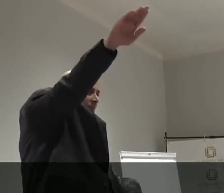The main French speaker (as in Madrid last November) was Pierre-Marie Bonneau, a lawyer from Toulouse and veteran of several tiny fascist splinter groups. Bonneau and Benedetti have recently launched yet another party under the name “Front Nationaliste”, attempting to claim the mantle of Jean-Marie Le Pen and his very similarly named “Front National” which they claim has been sold out to “Zionism” by Le Pen’s daughter Marine and her “Rassemblement National”.