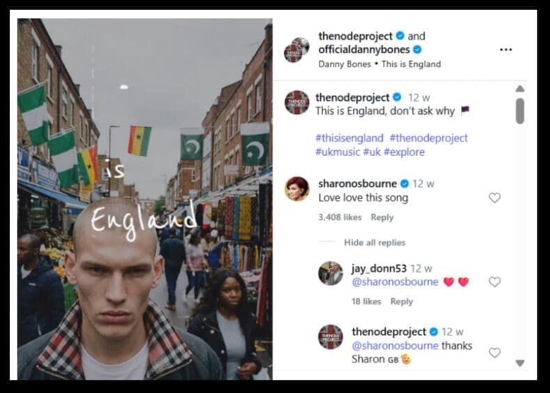 Most damningly, also in January this year, in response to a video of a far-right anthem called “This is England” on Instagram, Osbourne posted “Love love this song”.