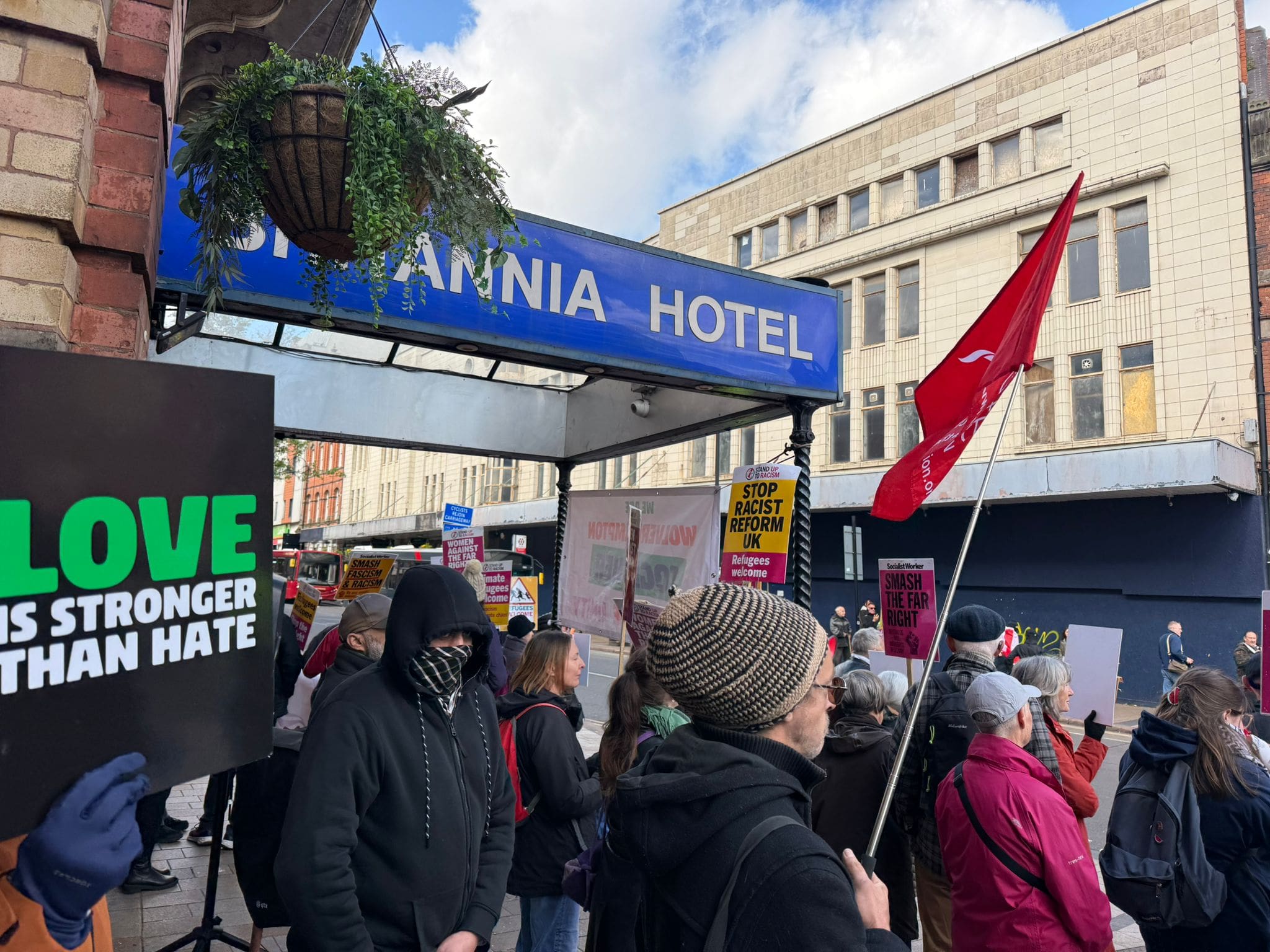Far-right demonstrators were met with noise and numbers in Wolverhampton yesterday when anti-fascists turned out to confront a protest at a hotel formerly used to house refugee families.